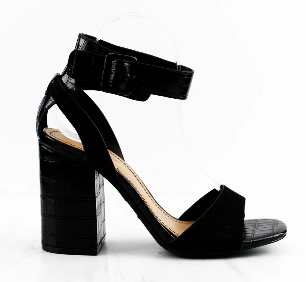 This ankle strap sandal will be a sure-fire hit at the next evening gathering. These heels feature a thick ankle strap with a tall covered block heel that adds few inches to your height.