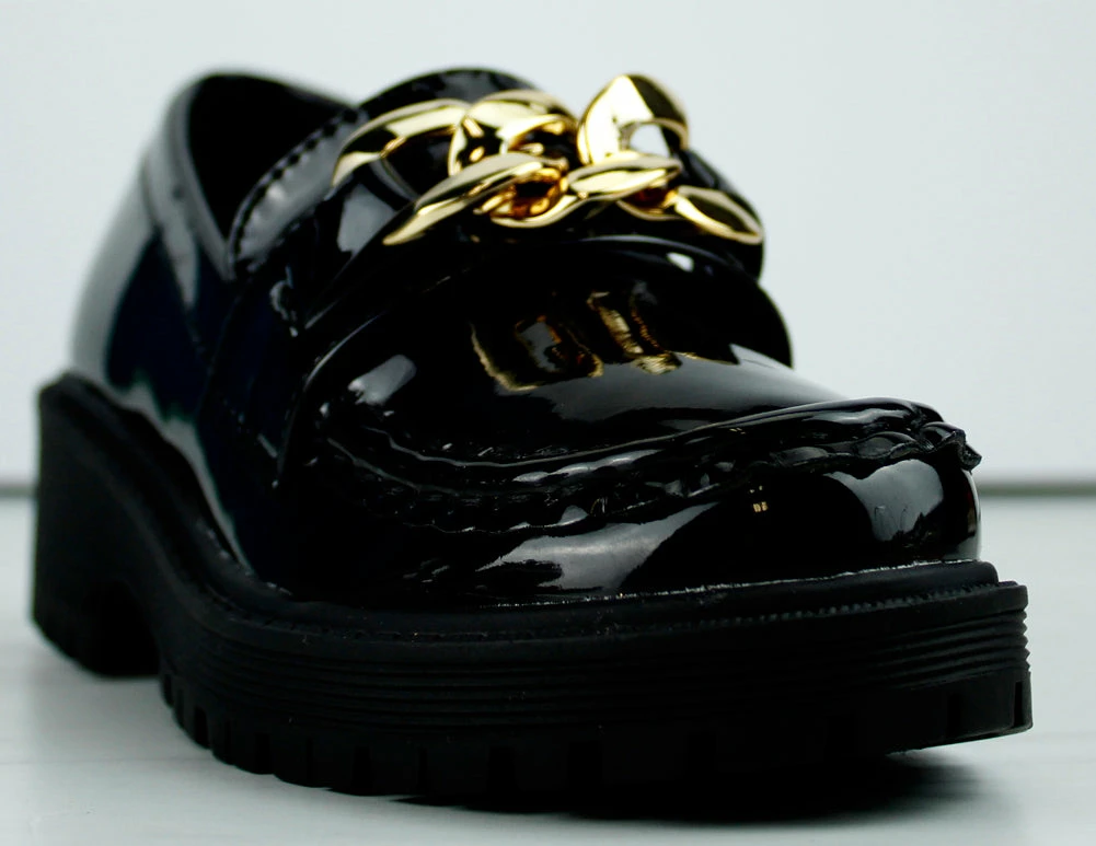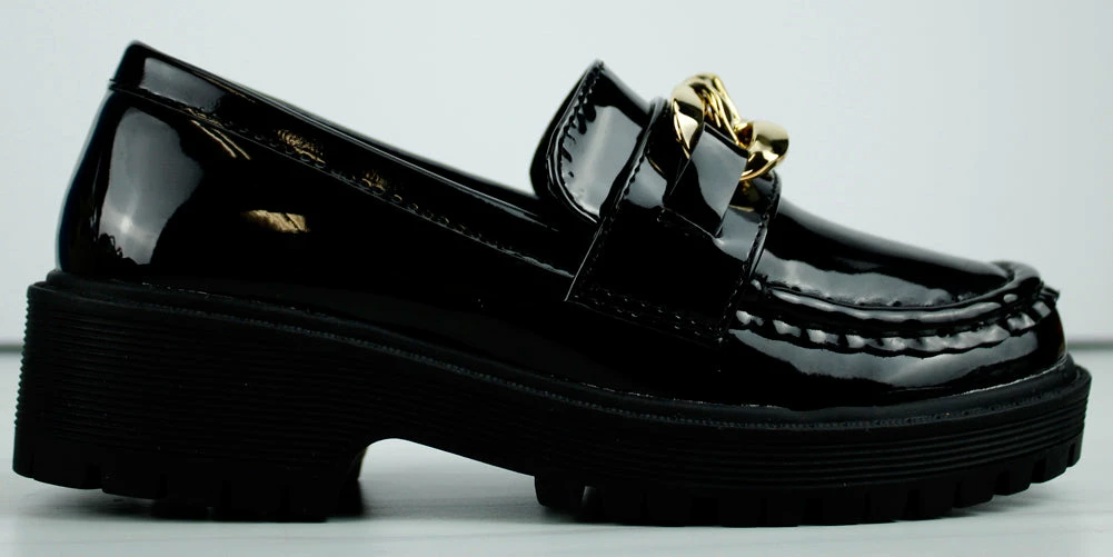 Forever Chief-63K Little Girls Platform Chain Accented Lug Sole Shoes