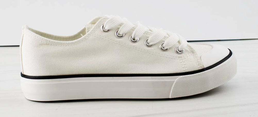 Designed with a lightweight canvas, these comfortable lace up sneakers are perfect for an everyday look. The low top and the slight cushioned sole makes them timeless and easy to wear with any outfit!