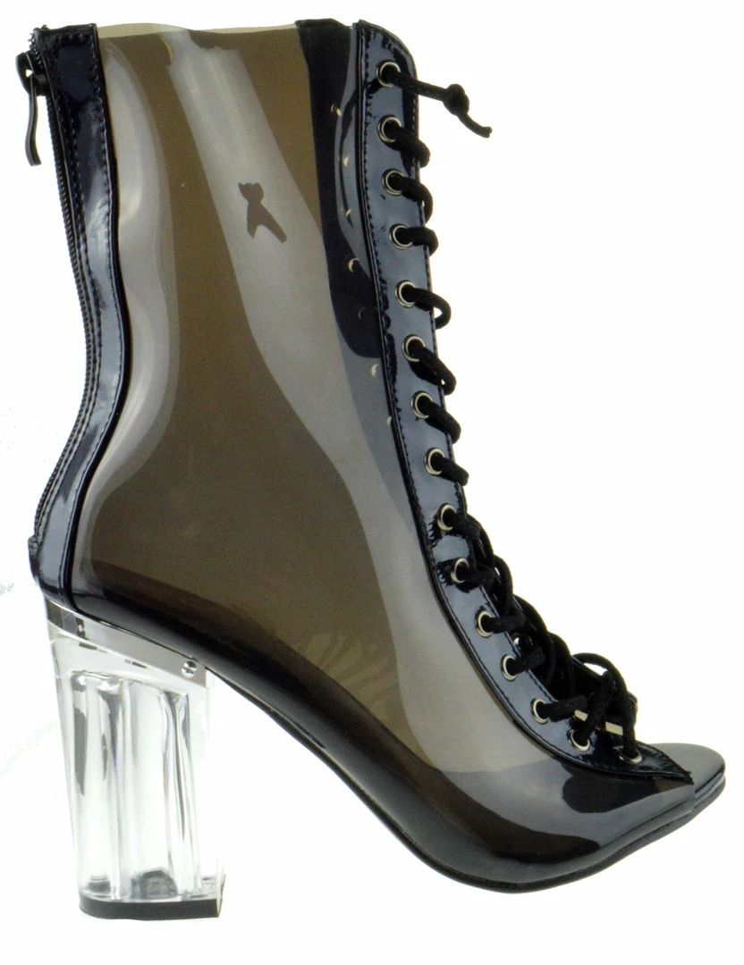 This gorgeous heel features an open toe with transparent material, chunky lucite heel, peep toe. Lightly padded insole for comfort