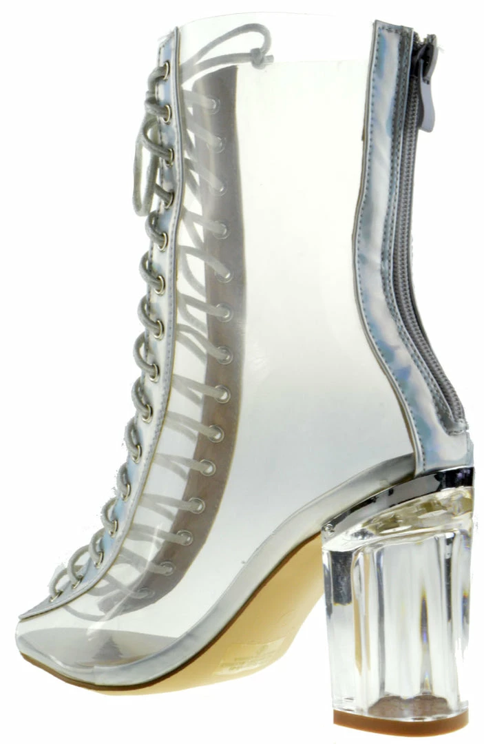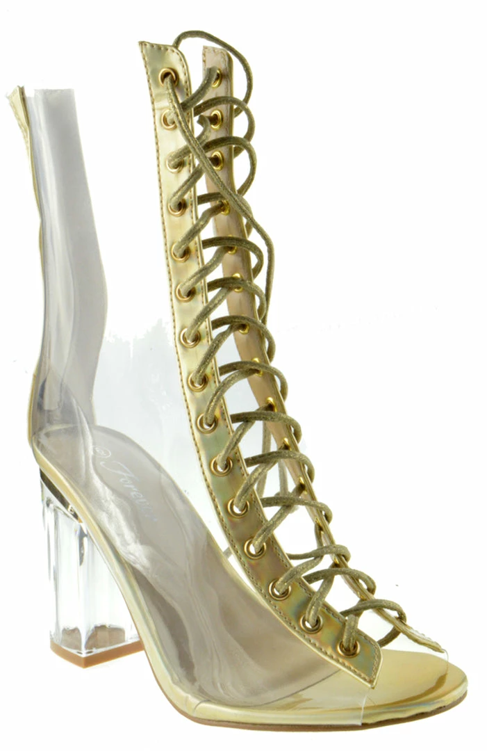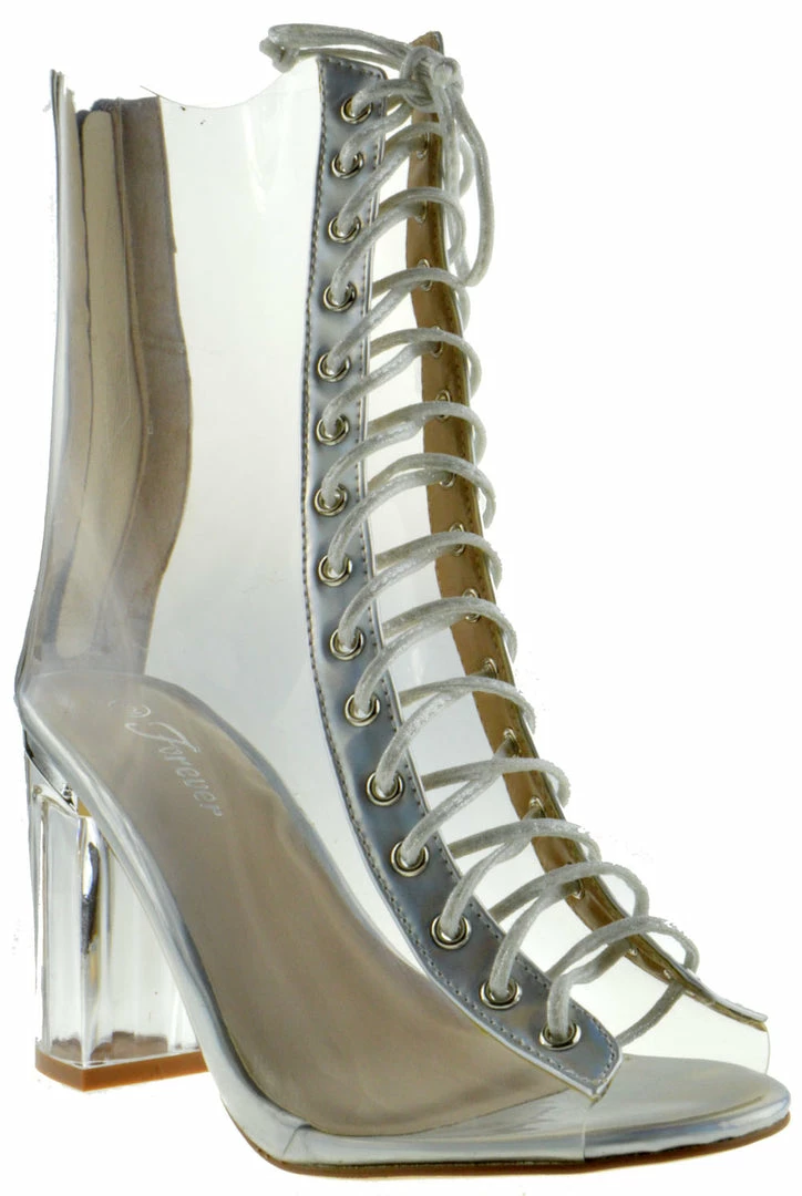 Forever Clear 45 Womens Lucite Chunky Heel Lace Up Sandals