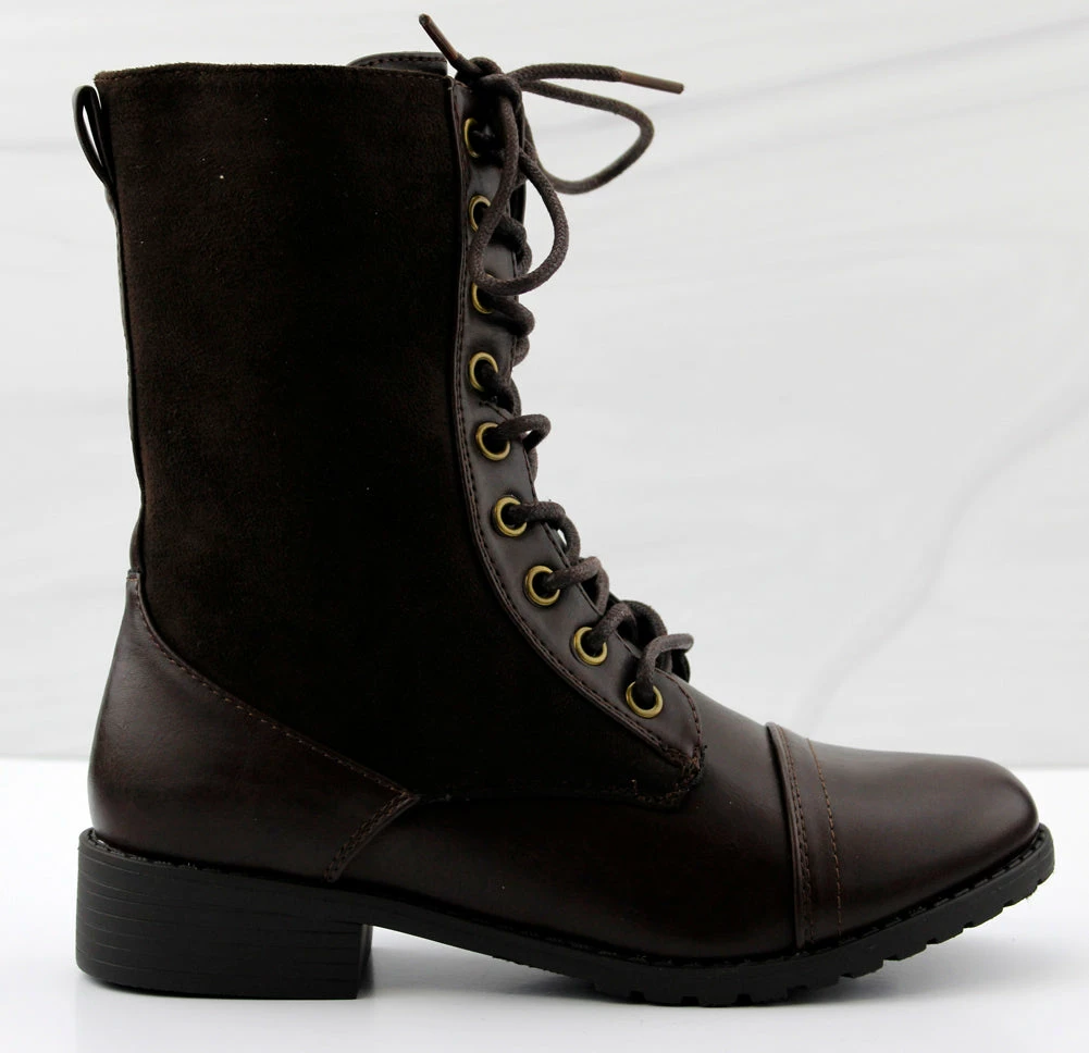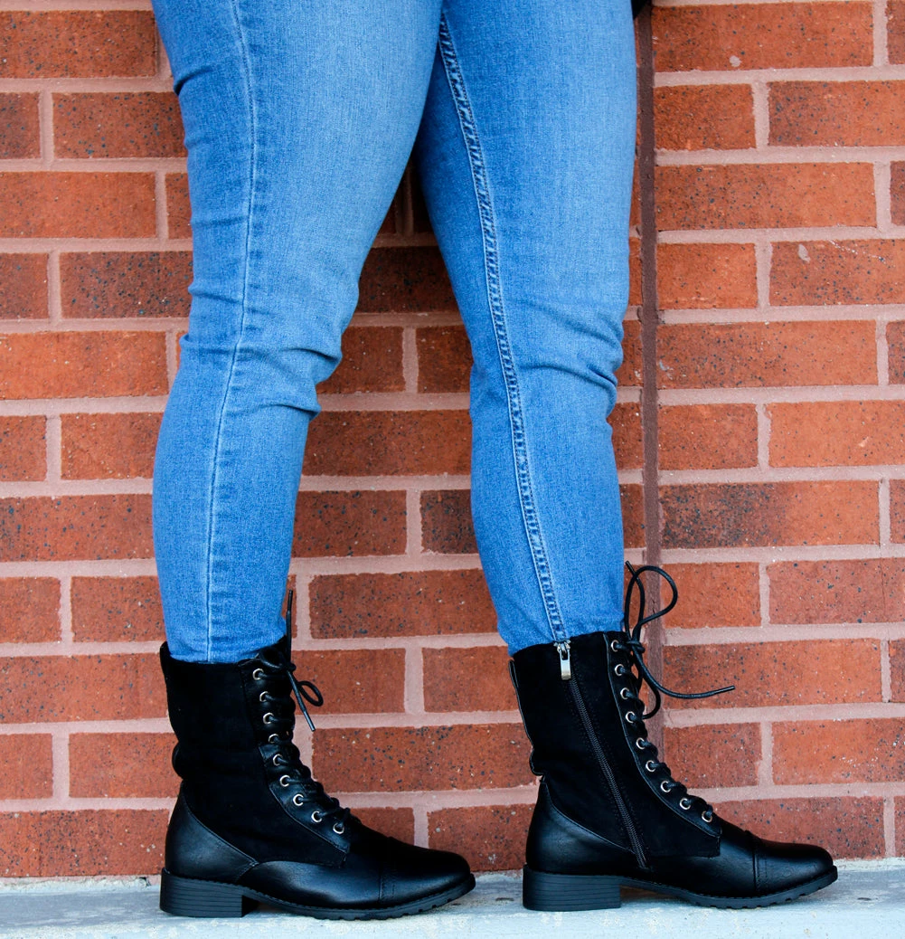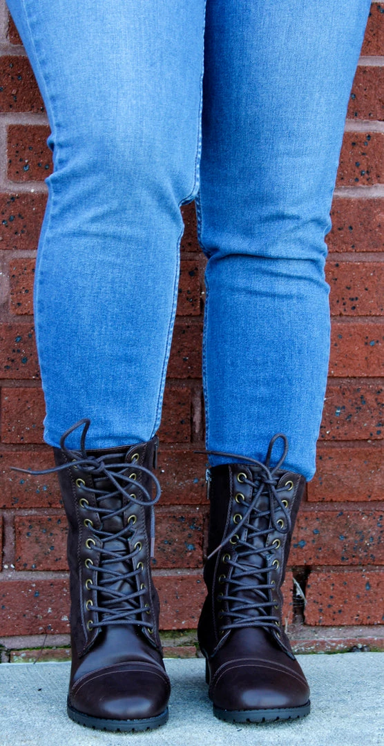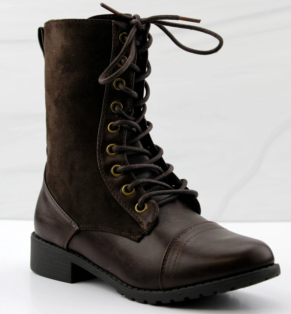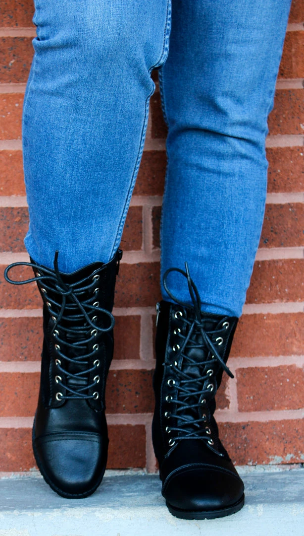 Want cute boots but are on the spunkier side of style? Jalen 33 is just right! These two toned combat boots have a faux leather surrounding with a faux suede material on the sides. They lace all the way up and have a small heel on them! They add just the right amount of spunk to any outfit!