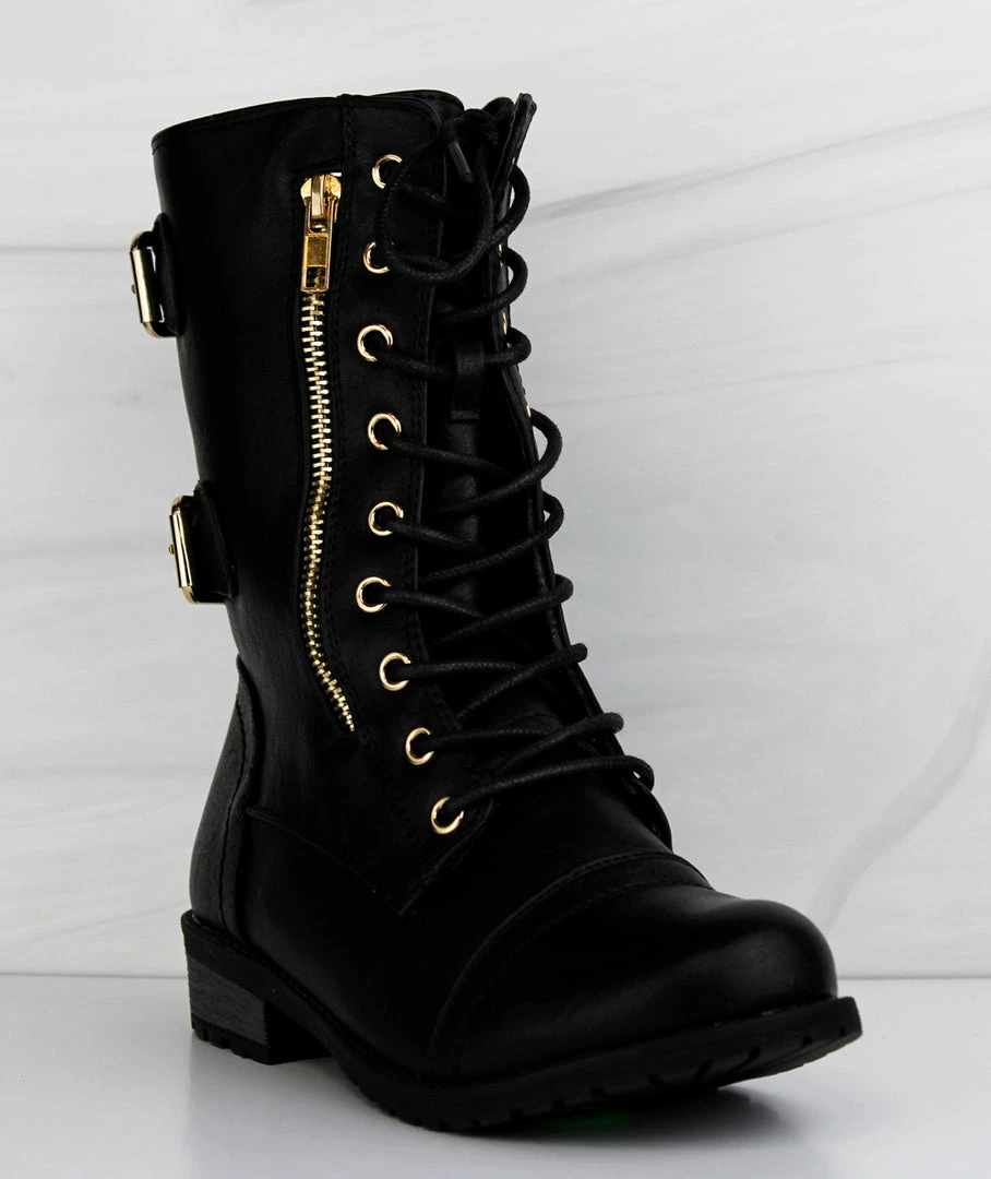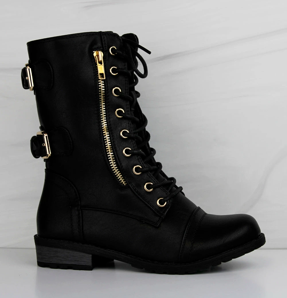 Forever Women’s Mango-71 Faux Leather Military Style Ankle Boots Thick Sole Buckles perfect to dress up or down. comfortable, fashionable and practical!