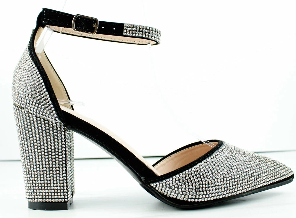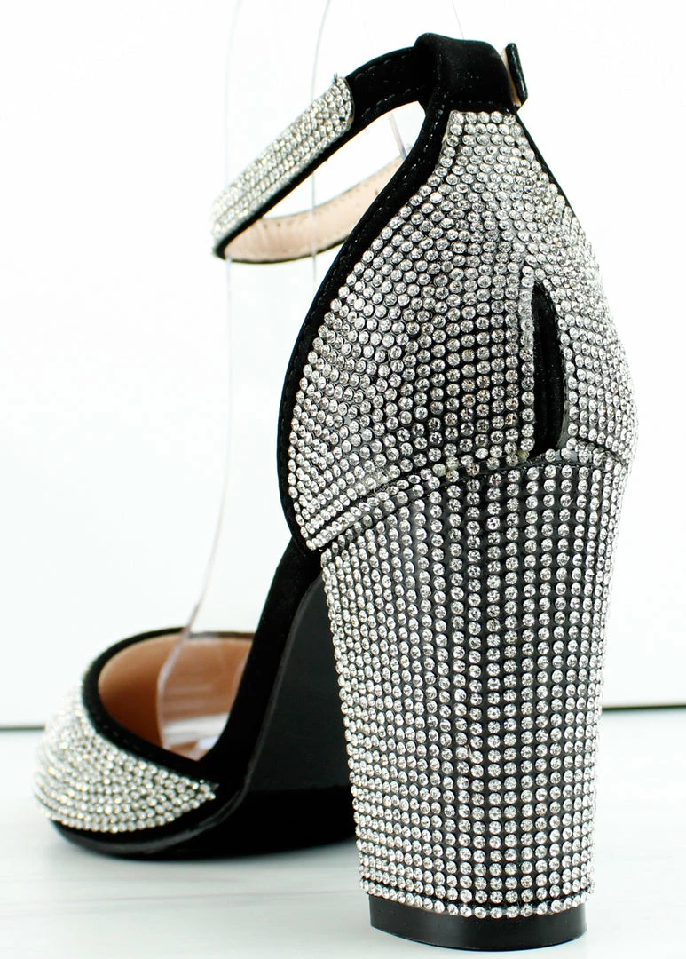 These rhinestone covered dress heels have the perfect chunky heel that will be comfortable for anyone to walk in. They also feature a closed toe and an adjustable buckle clasp.