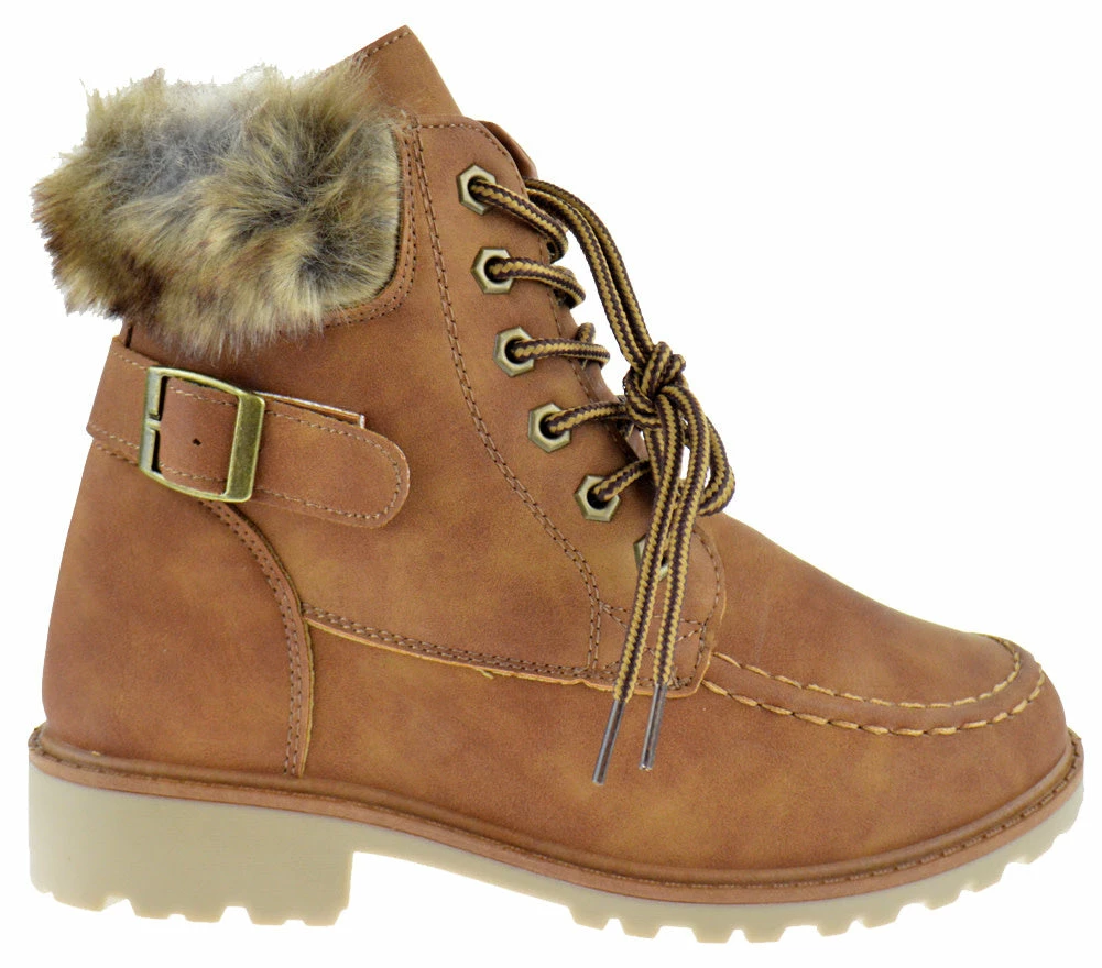 Get ready and hit the road in these faux fur trimmed work boots!