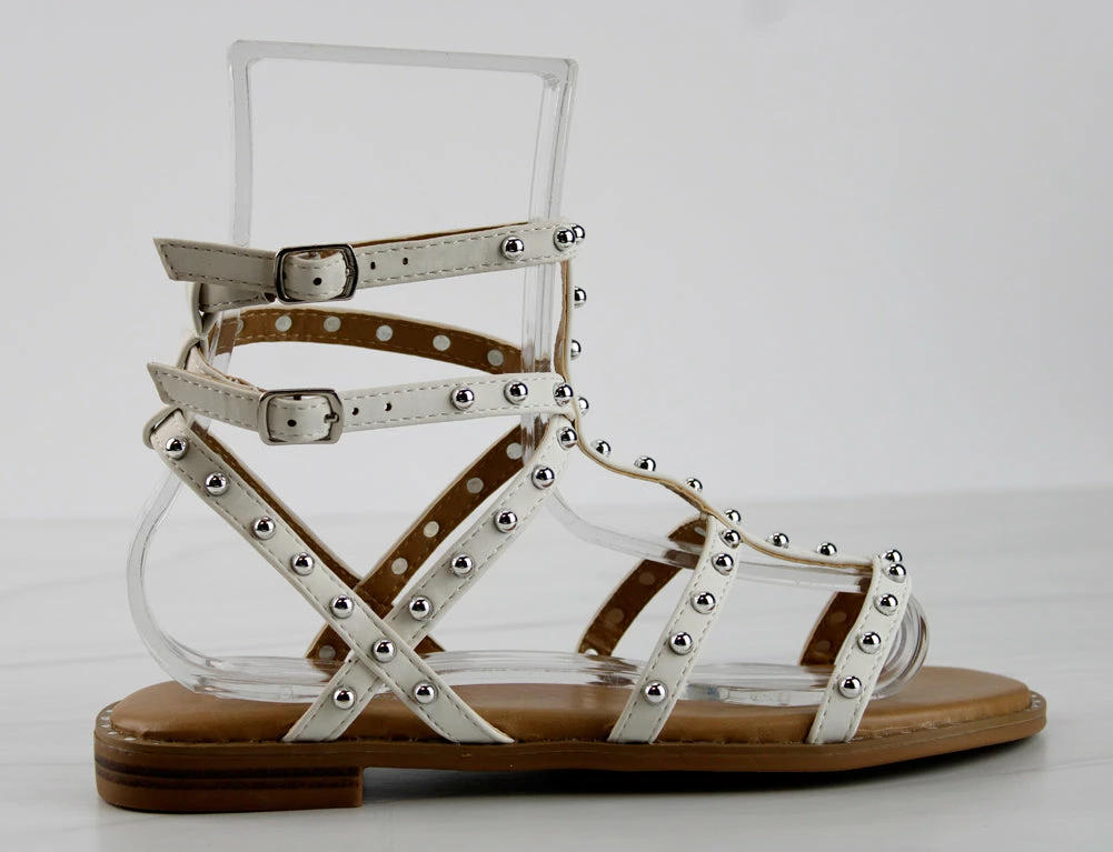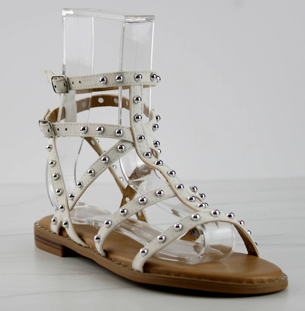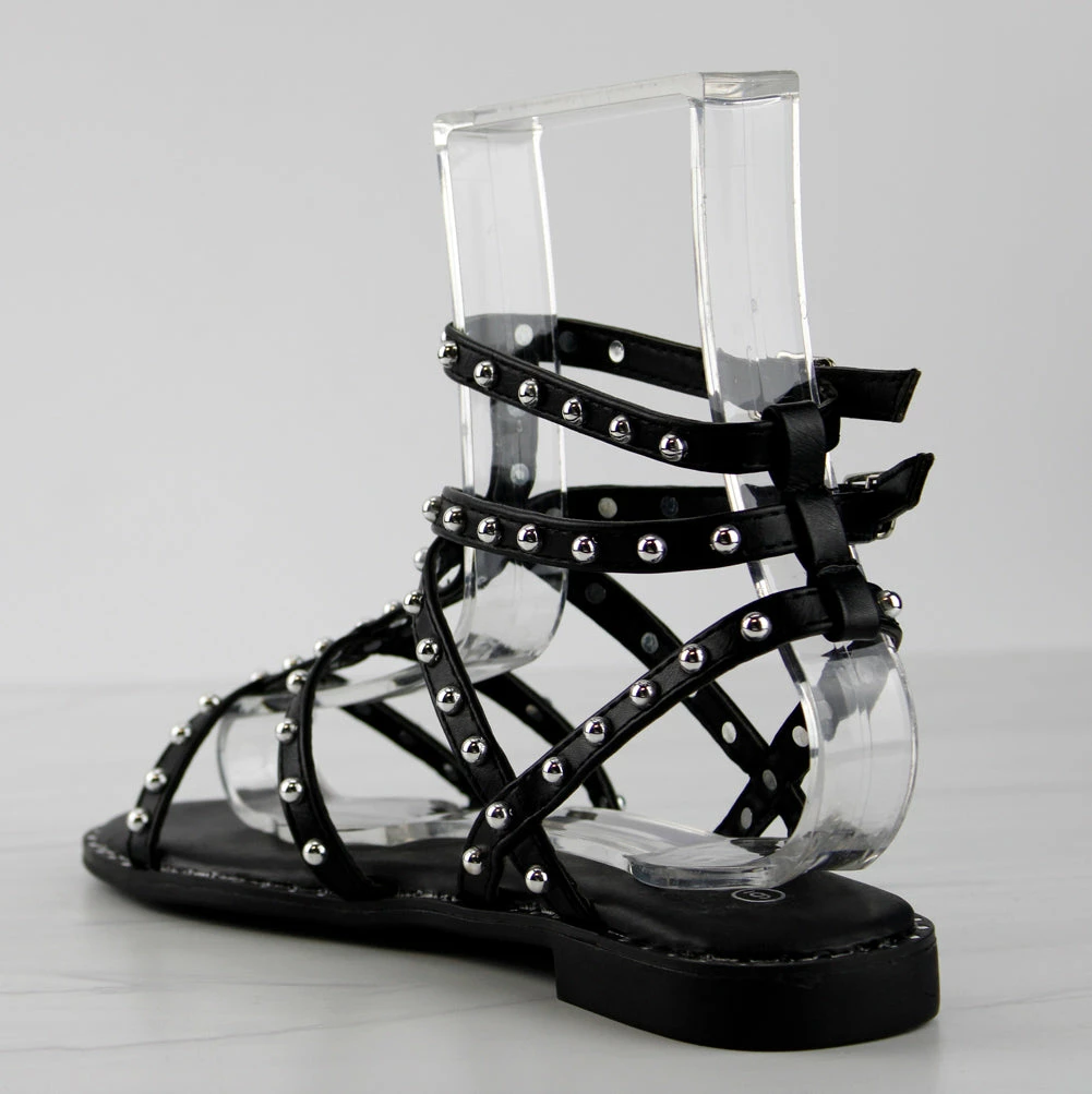 These super strappy, buckle closure, stud embellished, short gladiator sandals are the perfect touch to a little sun dress or any casual outfit for summer time!