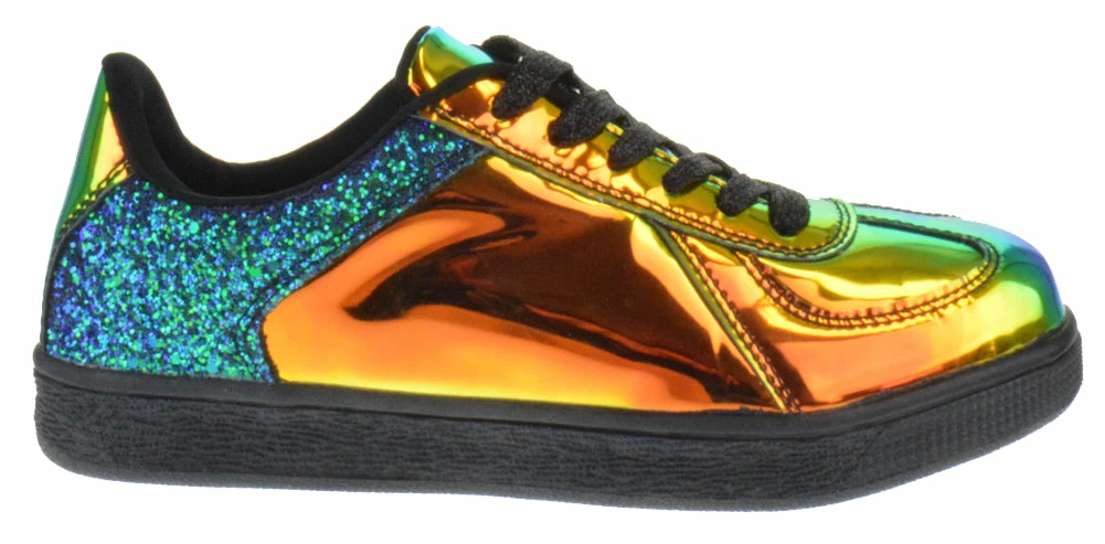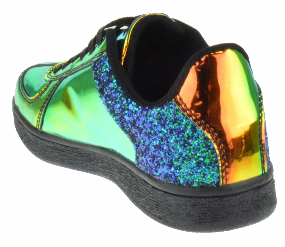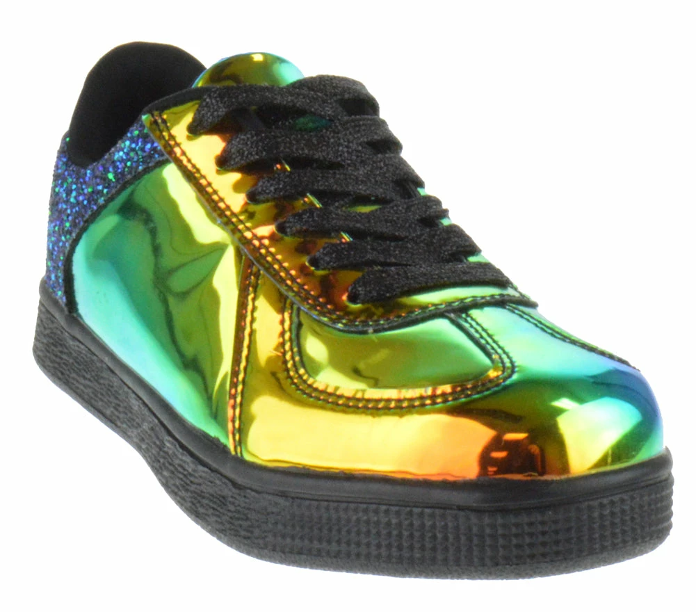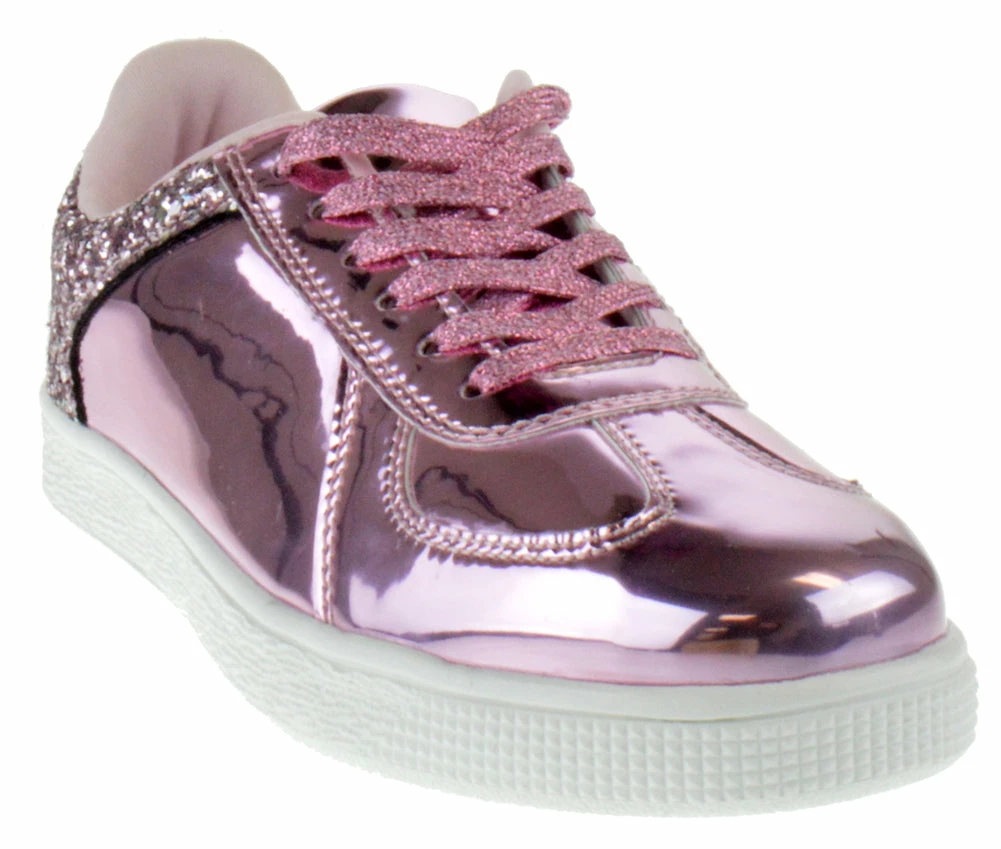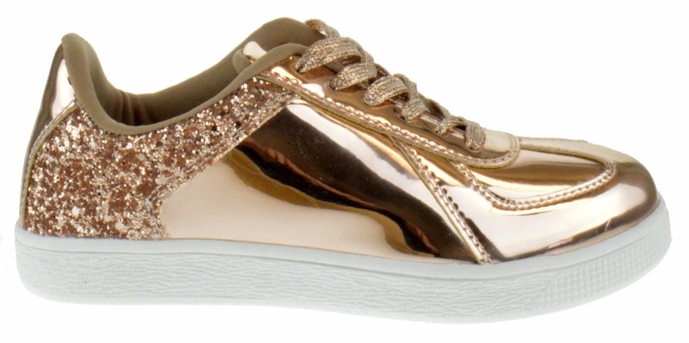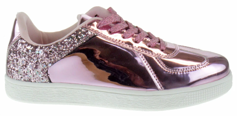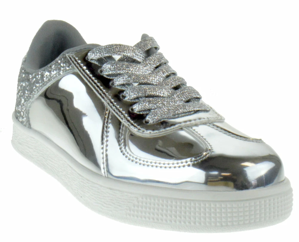 Step out in style in our Glitter embellished Metallic finish fashion sneakers!