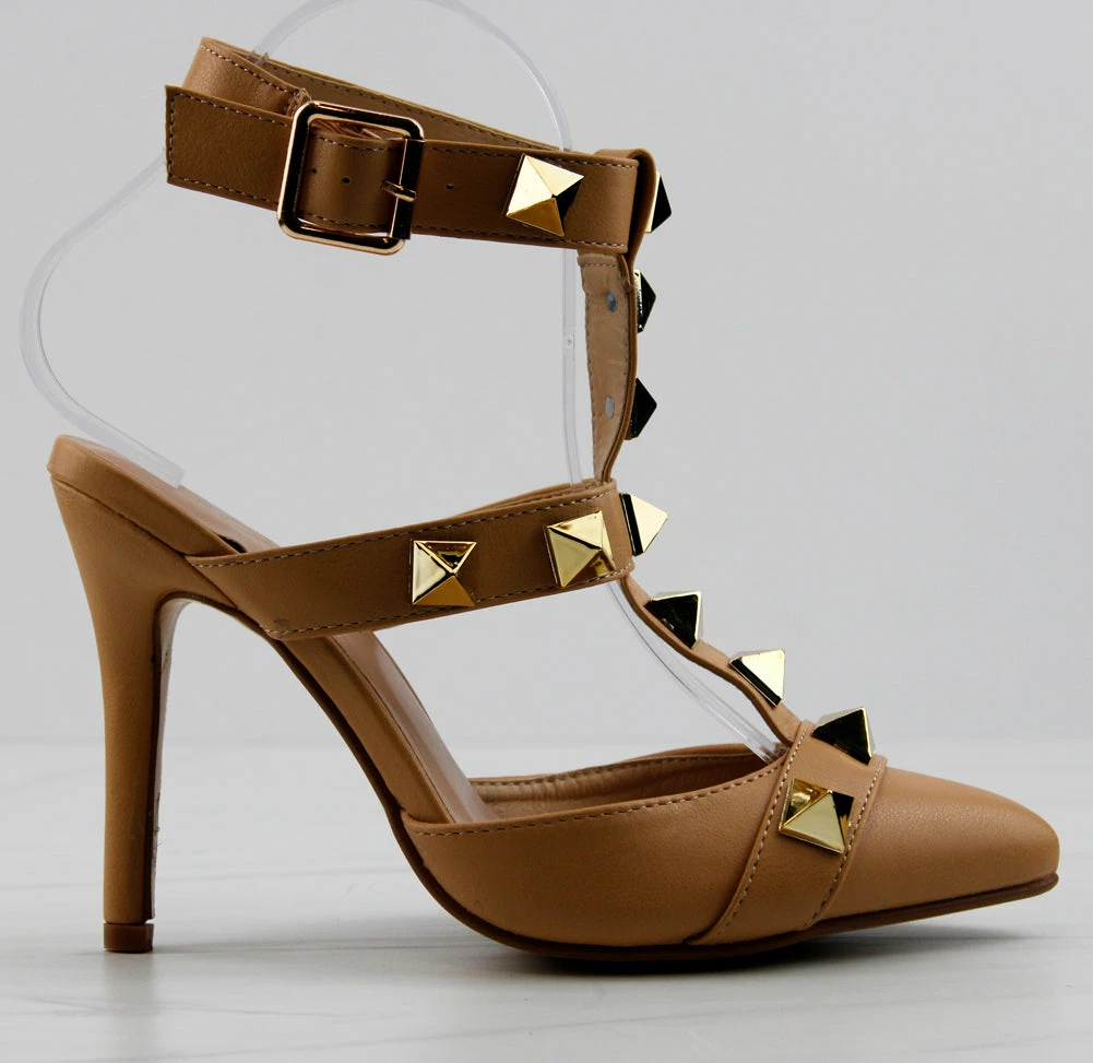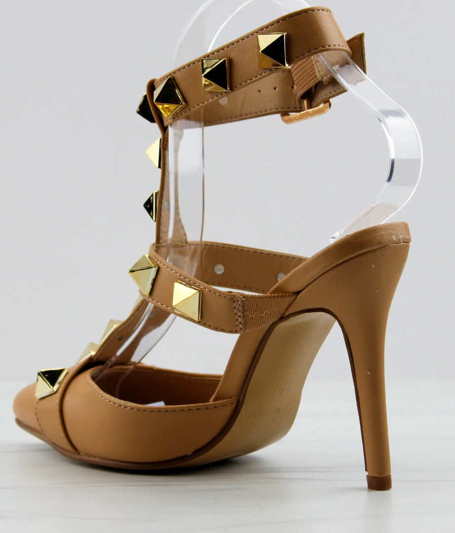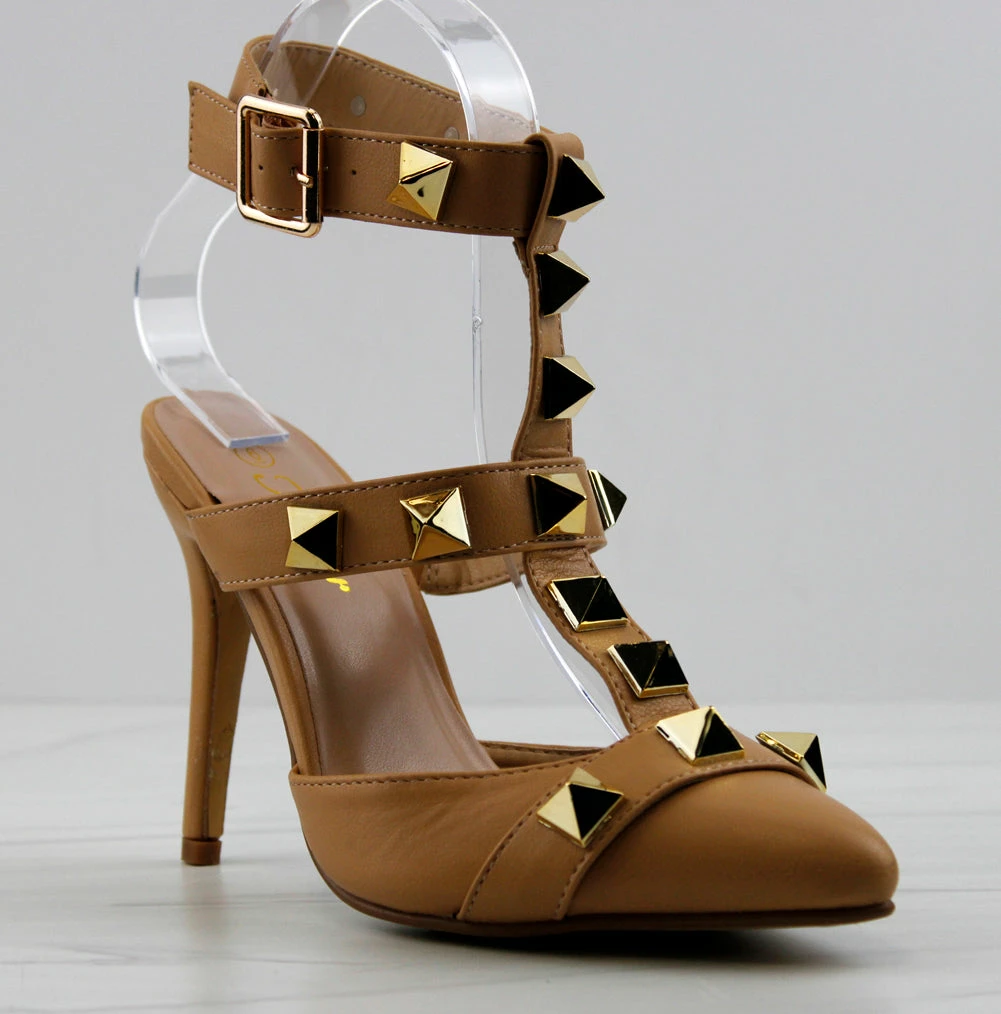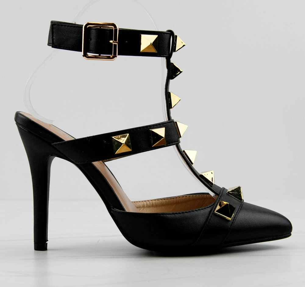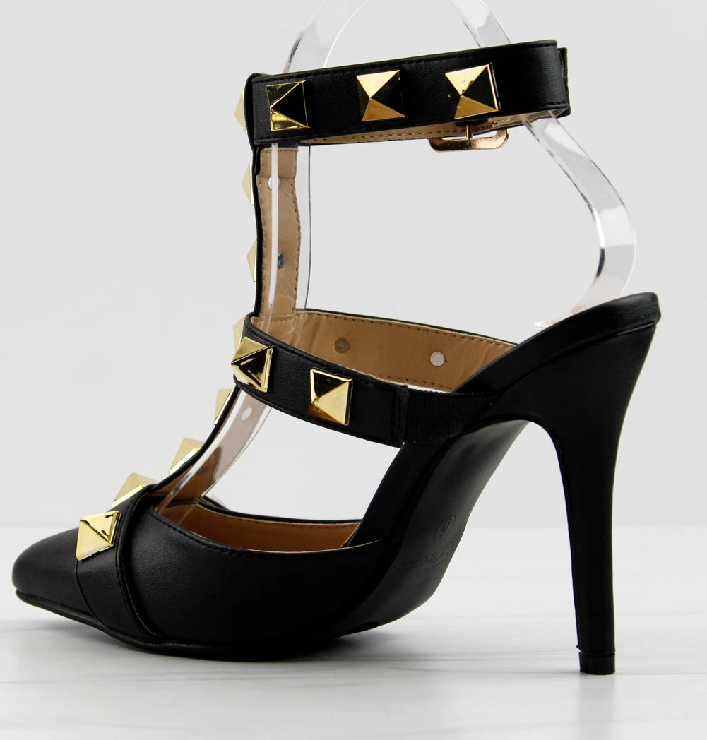 Embellished pumps with gold spikes and pointed toe . A night out with these pumps is sure to be a good one!