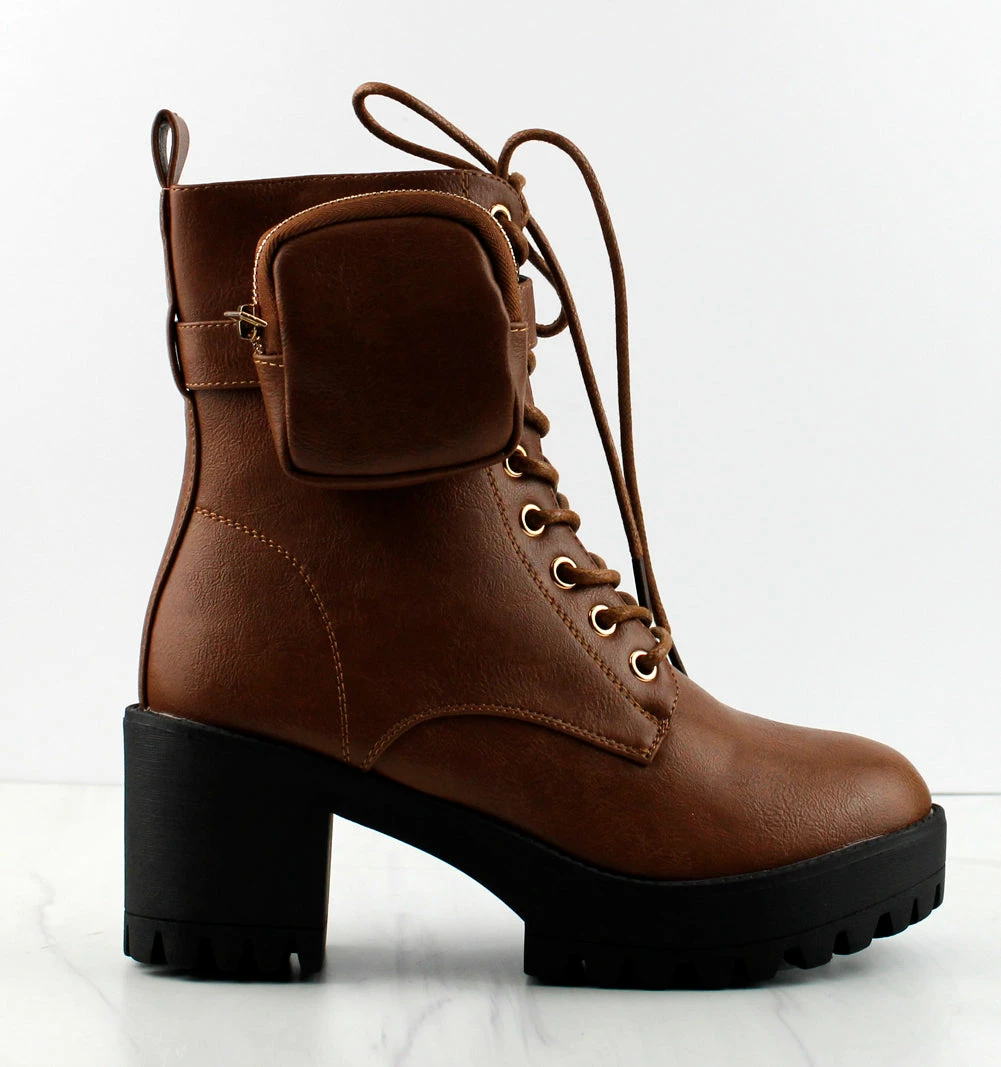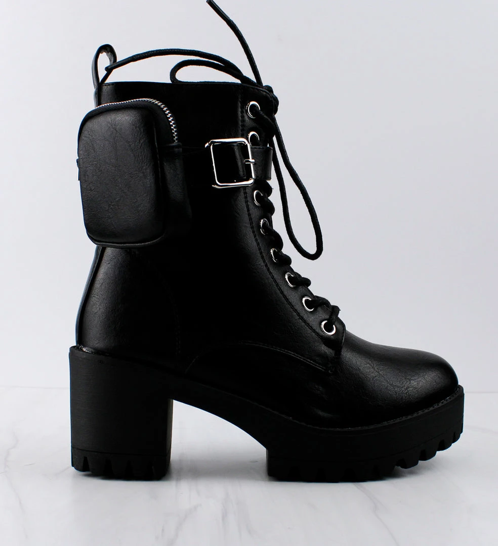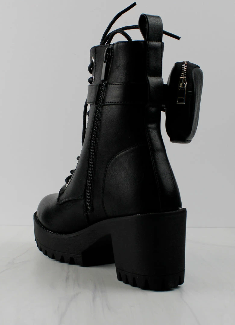 Heeled Combat boot with side pouch Trendy look for Fall and Winter.