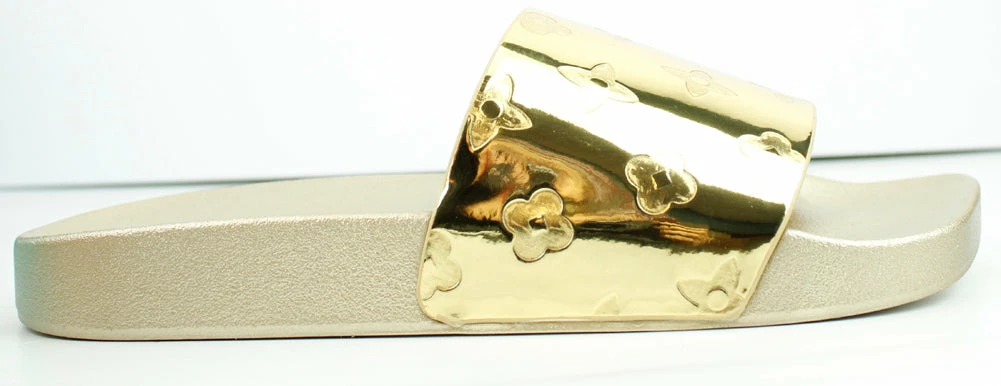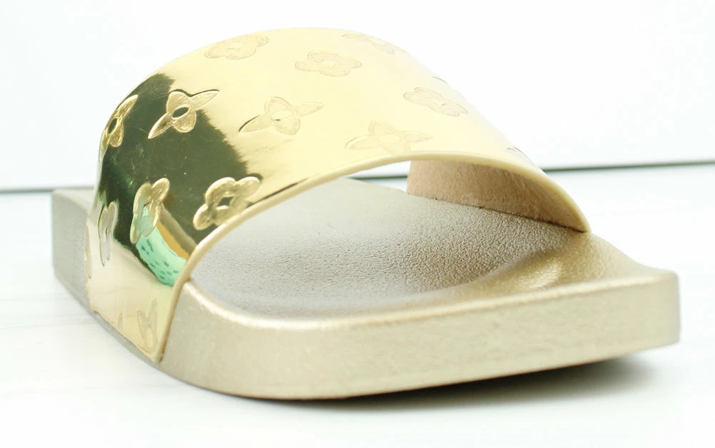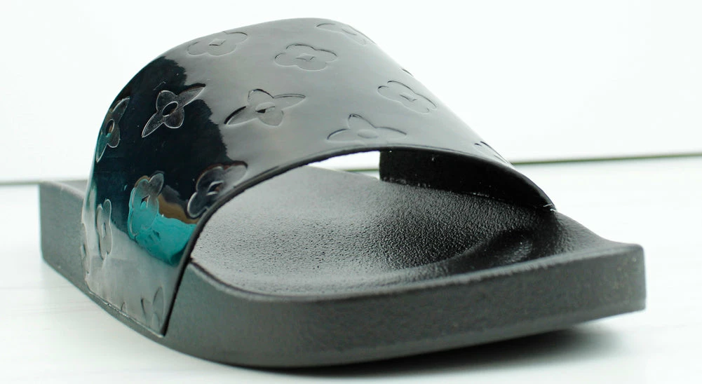 These slides feature a patent leather textured and patterned over the foot strap. These shoes are for the girl who doesn’t wanna sacrifice comfort for her look.