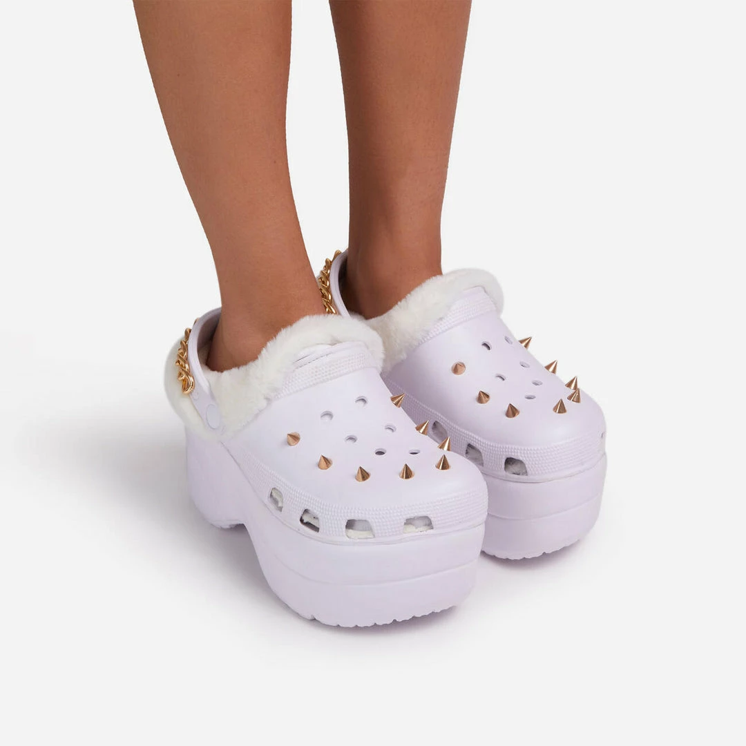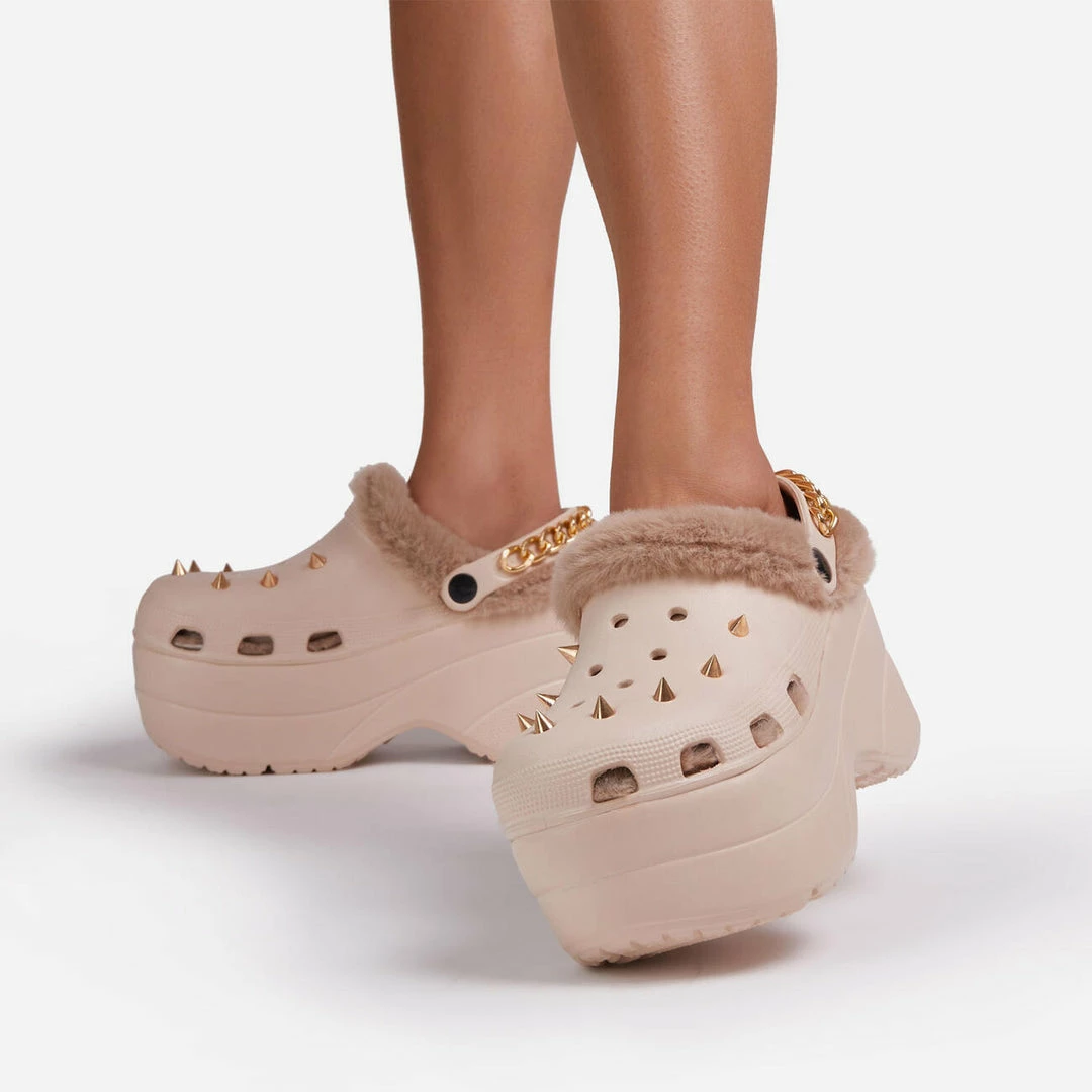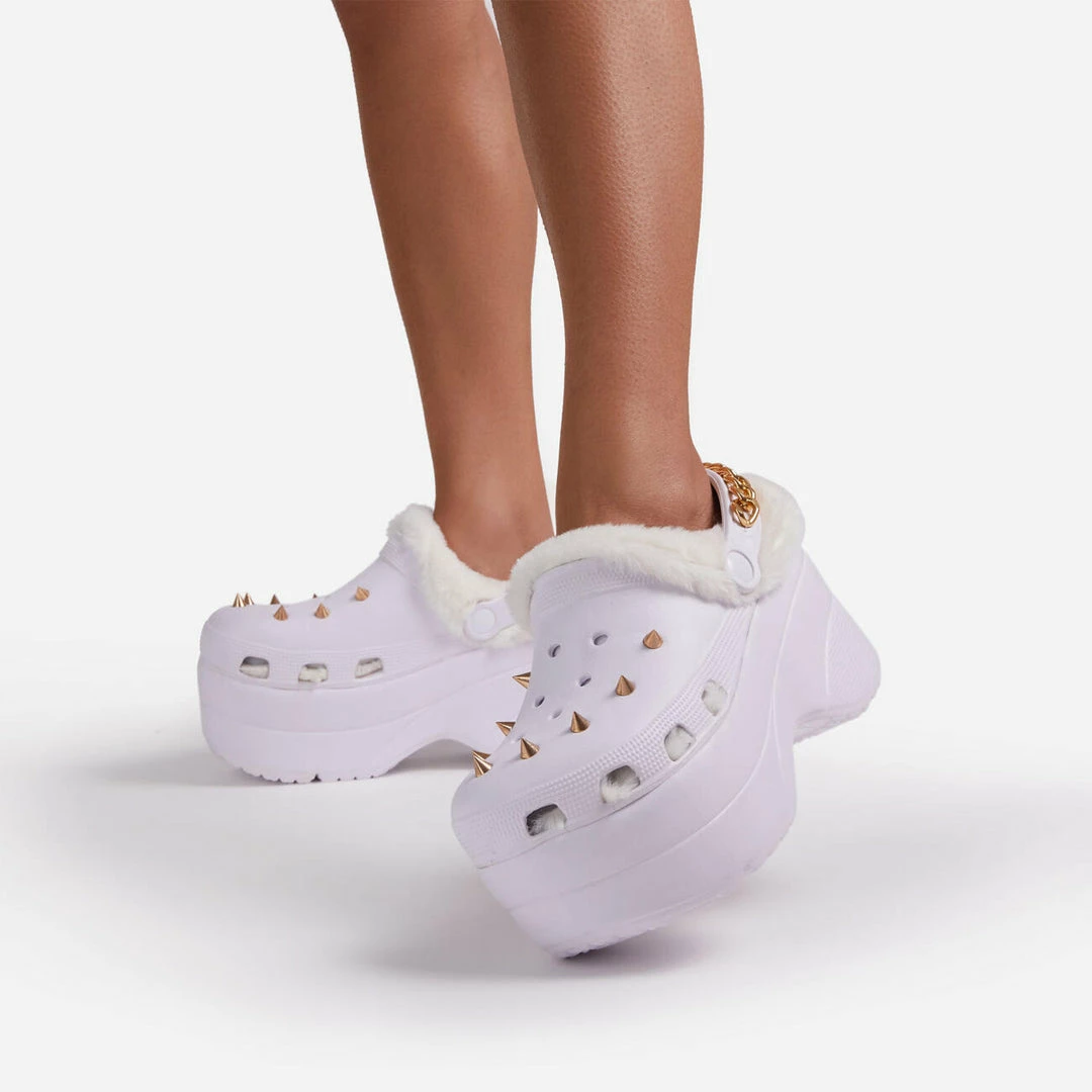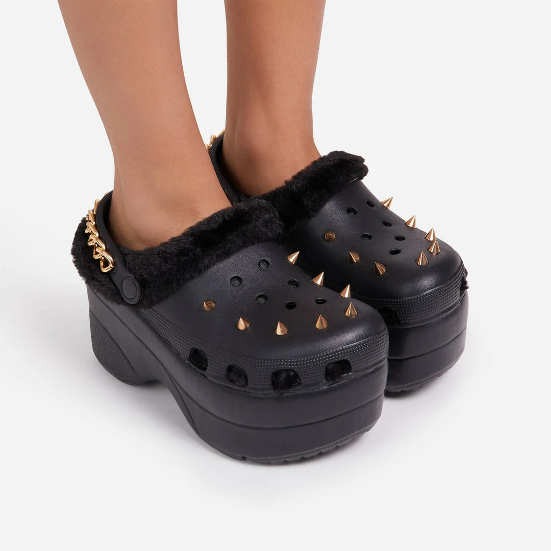 Lemonade Women’s Monster Womens Rubber Fur Trimmed Spiky High Platform Clogs