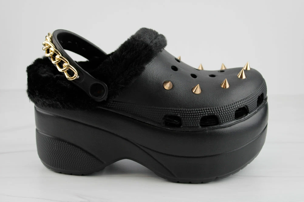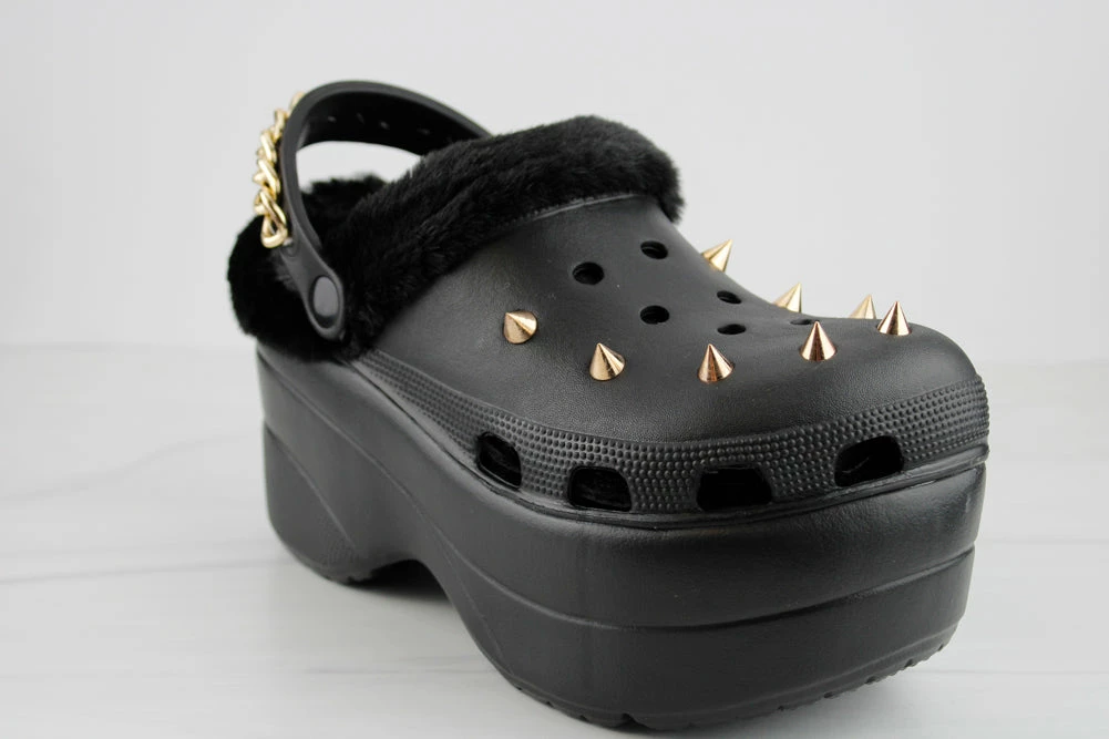 Make a statement in these gothic clogs , with chain detail in the back and spikes in the front and a Monster platform you are sure to make heads turn!
