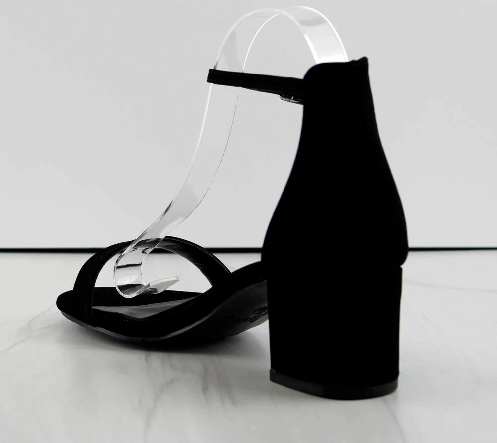 Stay comfortable and still sexy with our low heeled open toe heel.