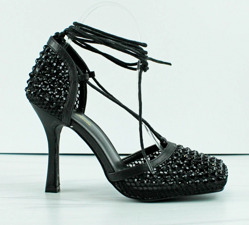 Ste out in this square toe pump. With straps and covered in rhinestone. You’ll be sure to make a statement with any outfit.