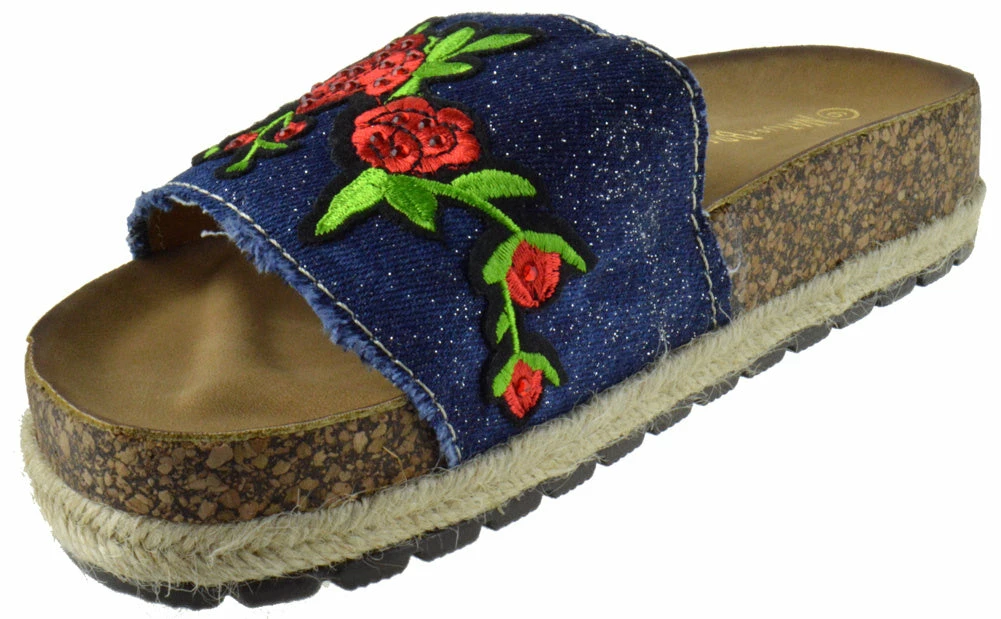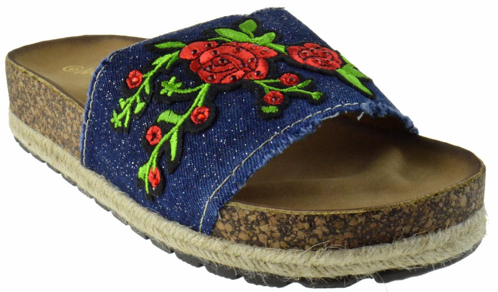 Nature Breeze Regain 02 Womens Denim Floral Espadrille Sandals Women’s