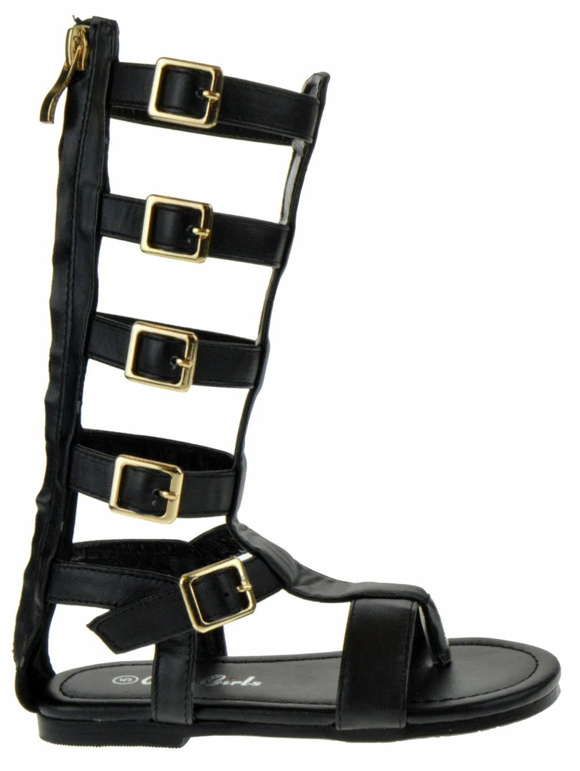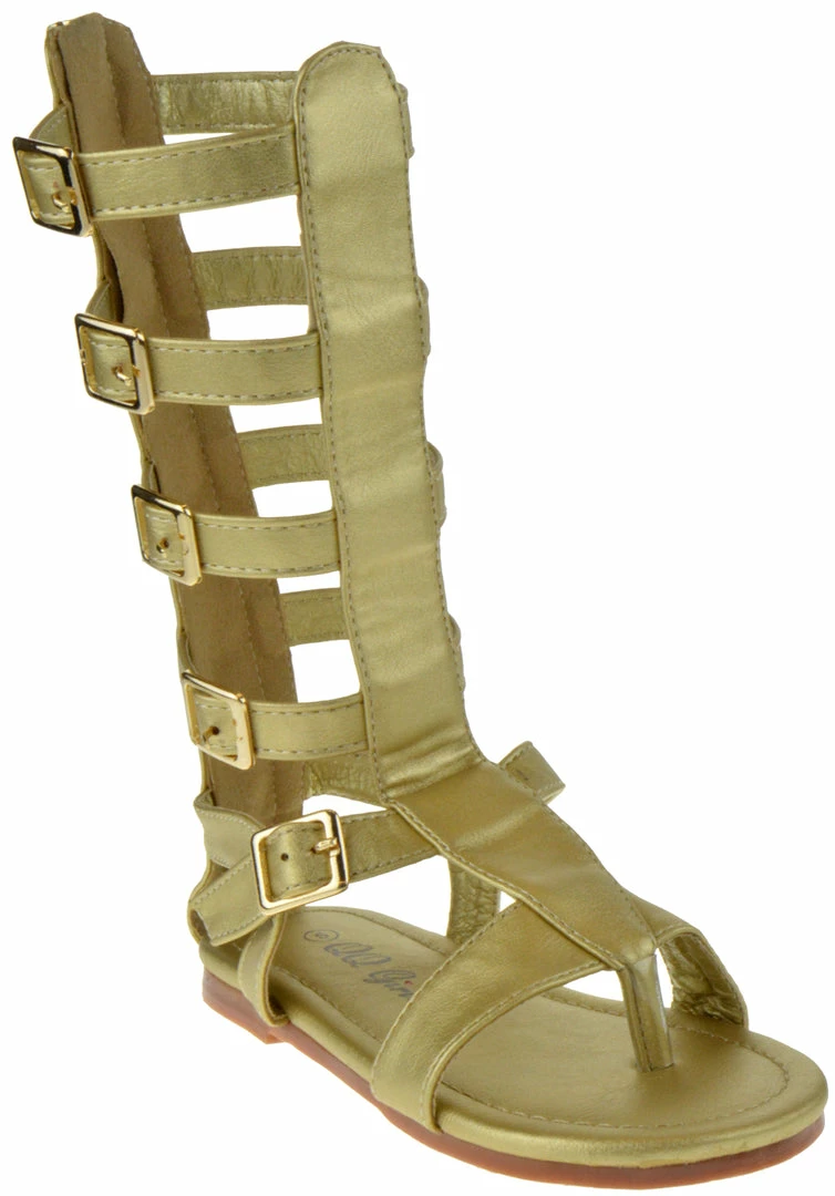 QQ Girls Ali-21-1 Baby Girls Gladiator Knee High Flat Sandals