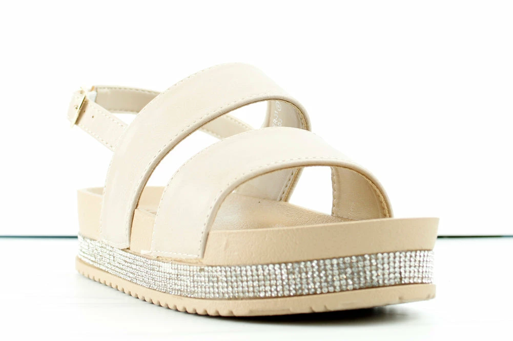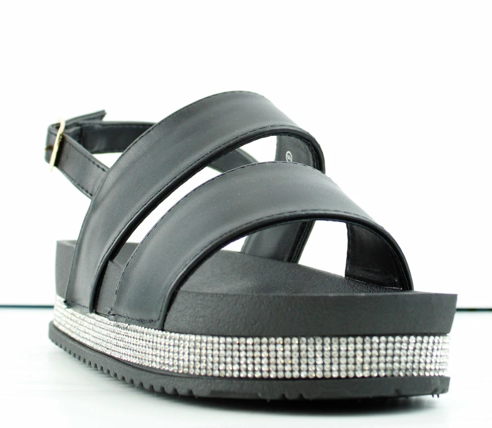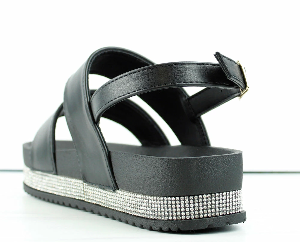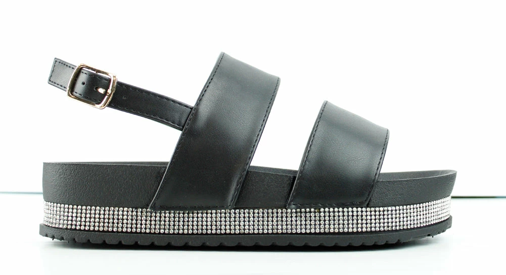These cute rhinestone platform sandals, will have you ready for a girls night out or even a day at the beach. Very versatile for many outfits and occasions! Added cushion for comfort-ability.