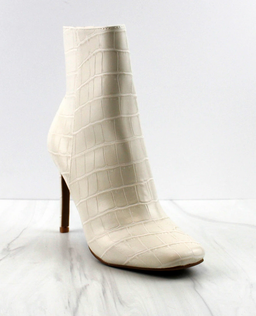 Look stunning from heel to toe donning the Obtain 1 bootie. The patent construction, sleek pointed toe, convenient inside zip and an elegant tapered heel complete this zipper bootie in style.