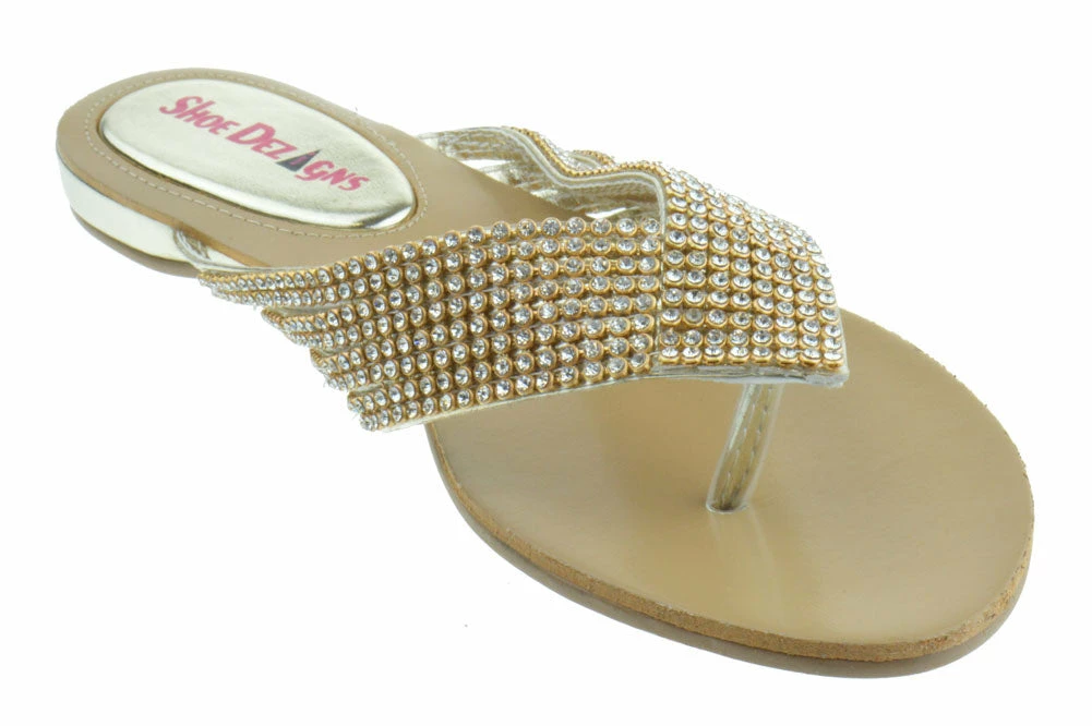Shoe Dezigns Women’s Kylie 09 Gladiator Rhinestone Thong Flat Sandals