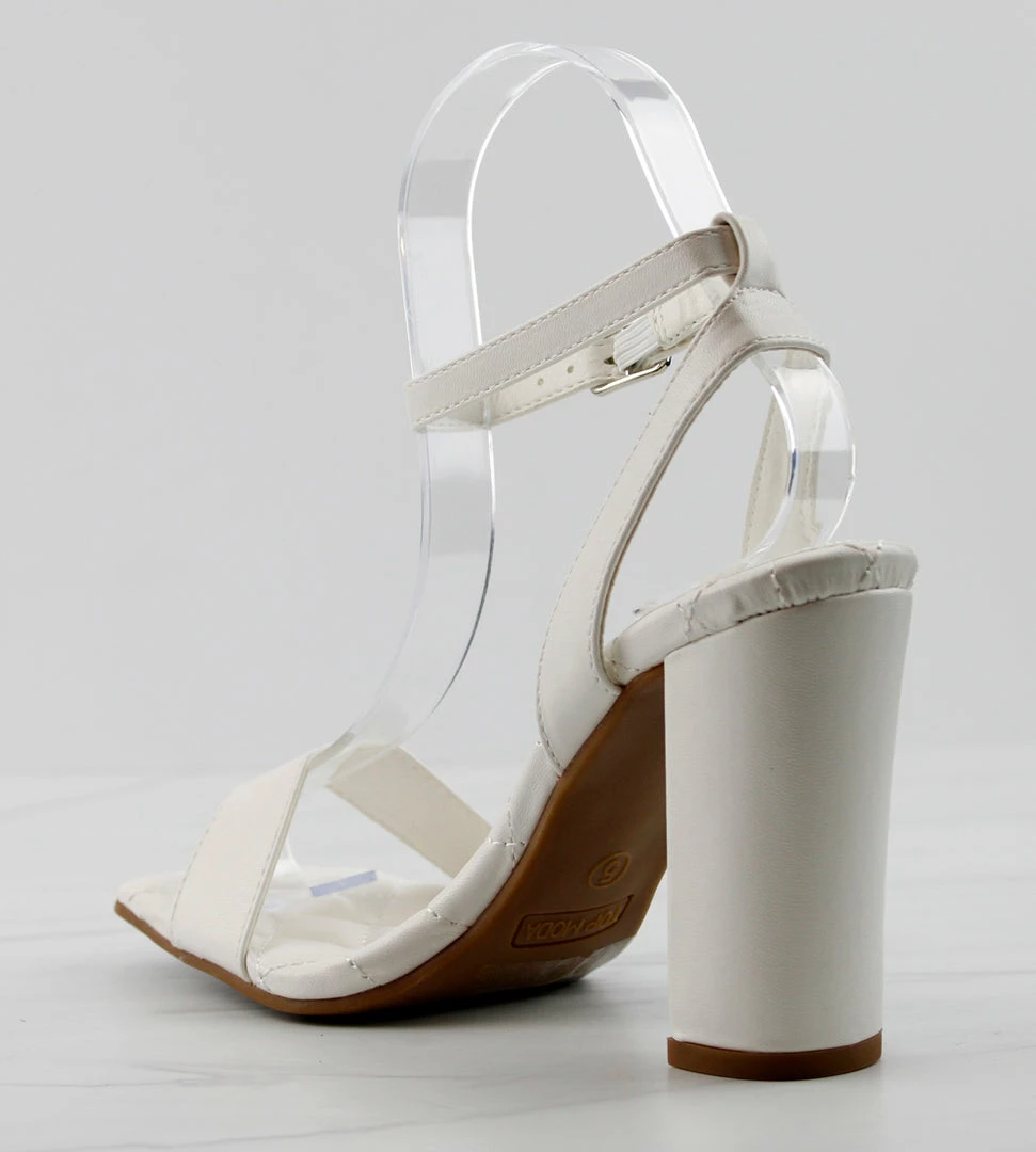 Our Pita 48 open toe sandal is cushioned for comfort and features a heel and ankle strap for perfect support. This is a great solid white block heel to add to your collection. You could literally wear this with ANYTHING. Dress up your jean shorts with a loose blouse or even a summer dress.