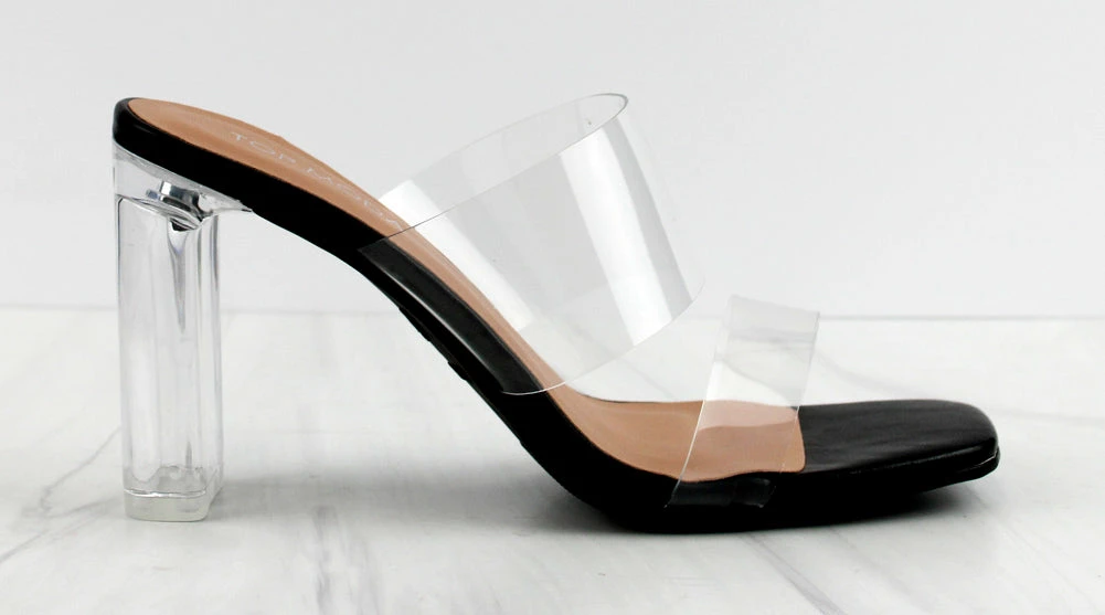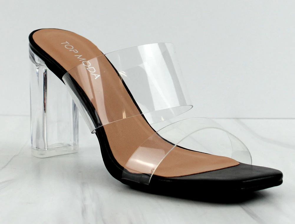 Top Guy Women’s SELMA 1 Womens Clear Strap Clear Block Heel Sandals