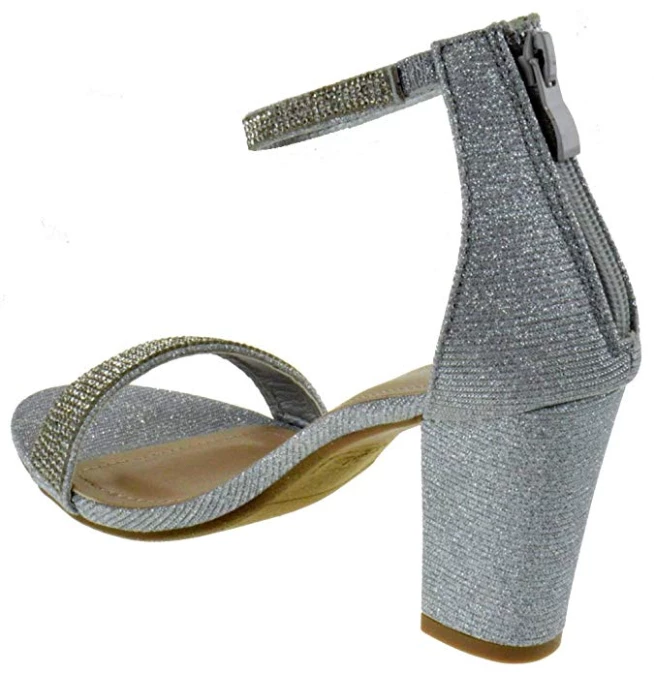 The Gallery is a super trendy heel right now! Simple rhinestone straps one across your toes and the other around your ankle. There is a zipper on the back. The thick block heel is 2.5″ inches tall. Easy and manageable to walk in!