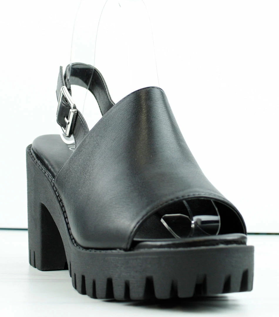 This fun peep toe chunky platform sandal will spruce up any look. The adjustable strap also adds an extra layer of comfort