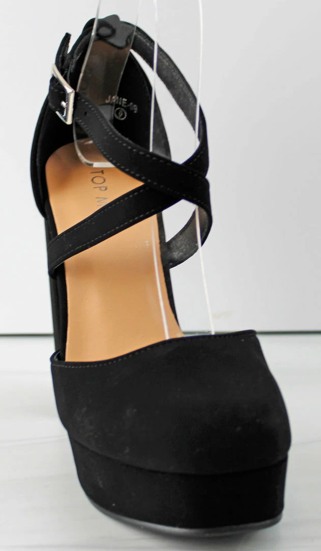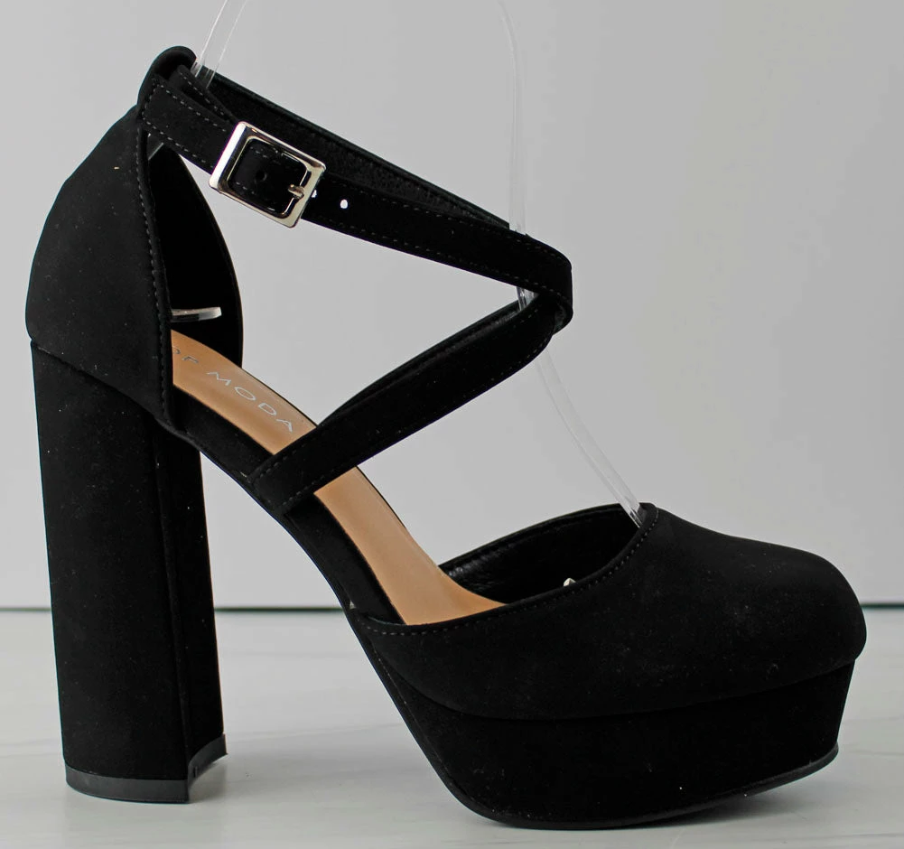 These closed toe heeled platforms are simple enough for any occasion! The criss cross ankle detail adds some character to them, and they also feature a ankle buckle closure, allowing them to be made as snug as is needed.