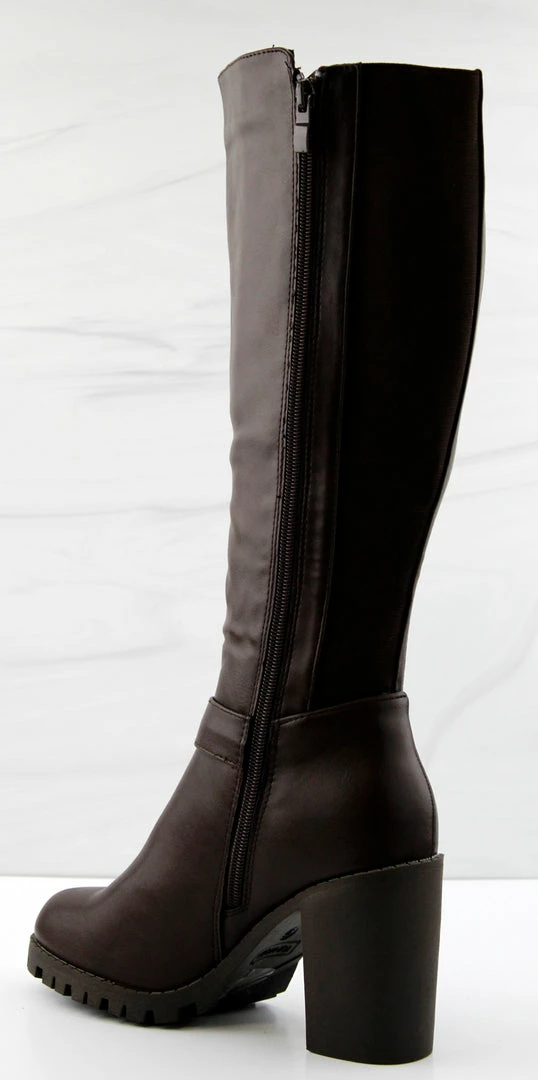 Top Moda Jenn 1 Womens Double Buckle Accent Platform Chunky Heel Knee High Boots