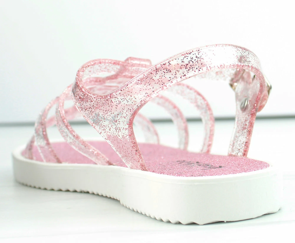 These sandals will bring style and comfort to your little girl! They feature a buckle clasp on the ankle, making them adjustable. They also have a multi strap look over the foot.